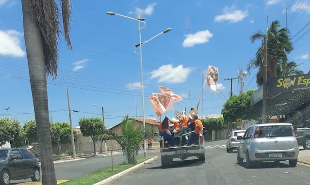 uma camionete participando de carreata do Partido Solidariedade em Mendonça transportando